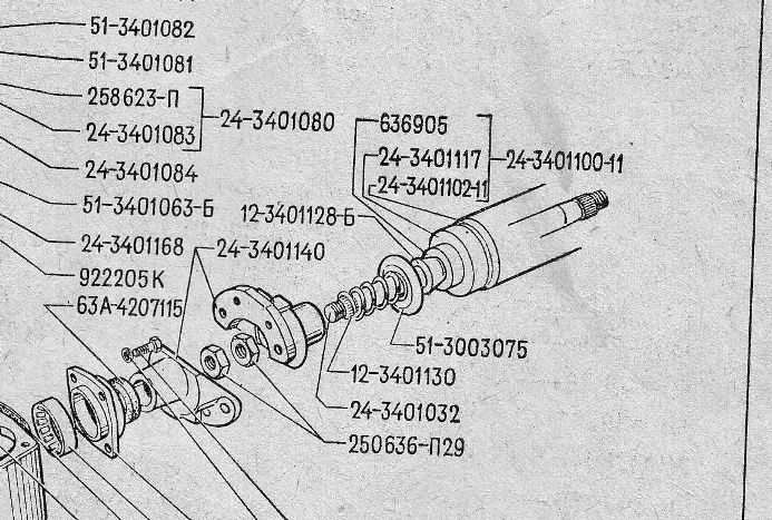 Нас интересует ШНКФ.453461.103, потому что к карданчику под гладкий вал проще всего адаптировать рулевой вал ГАЗ-24.