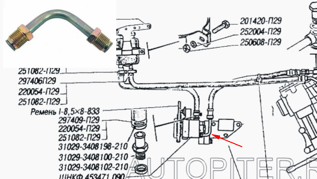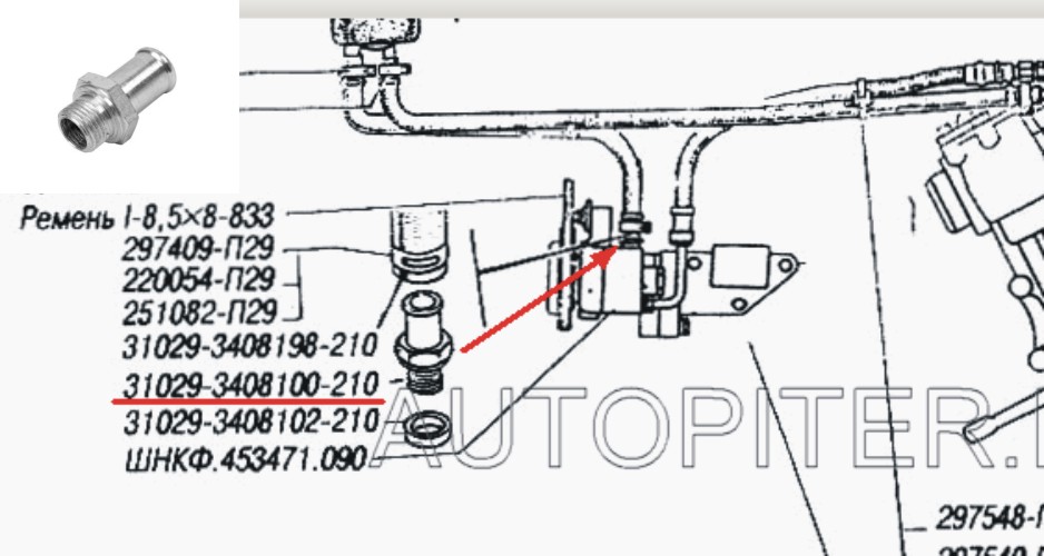· 3110-3408184-20  наконечник сливной к редуктору под шланг (обратка в бачок)